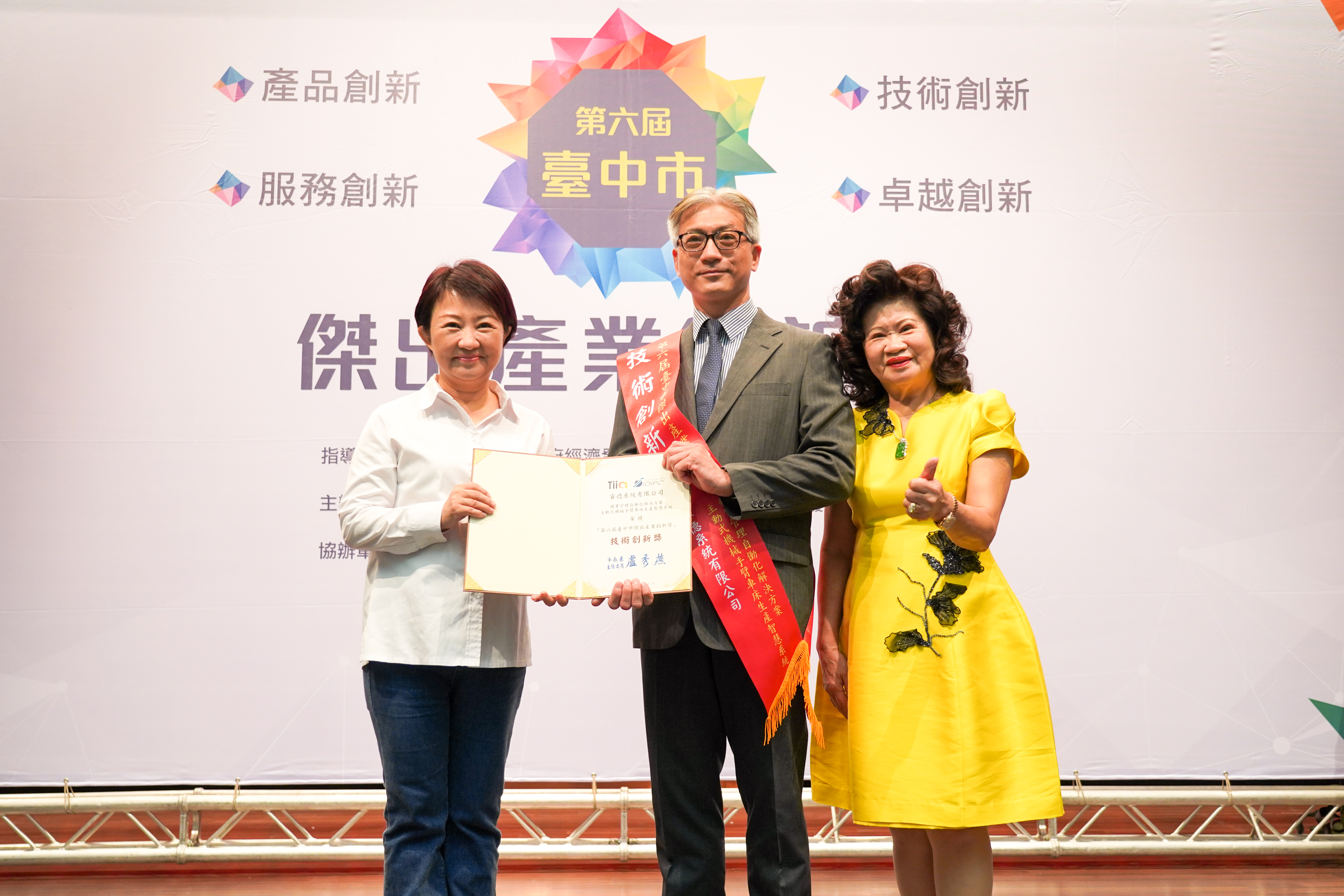 睿德榮獲2022臺中市傑出產業創新獎 - 技術創新獎 睿德榮獲2022臺中市傑出產業創新獎-技術創新獎殊榮,由台中市長盧秀燕(左)、台中市產業創新協會理事長楊素真(右)公開表揚,並由睿德創辦人陳正偉總經理接受表揚。