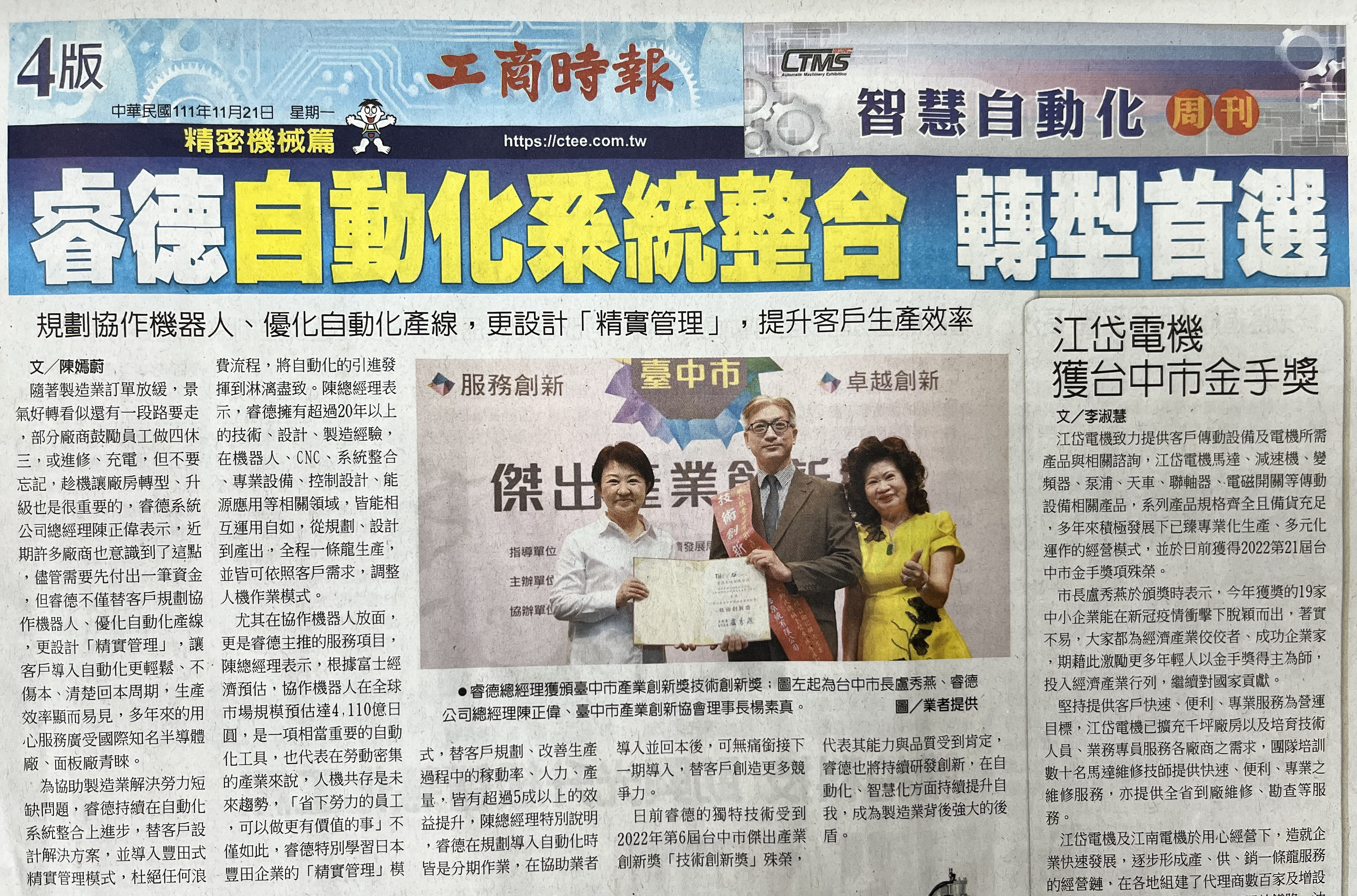 工商時報採訪報導 - 睿德自動化系統整合轉型首選
